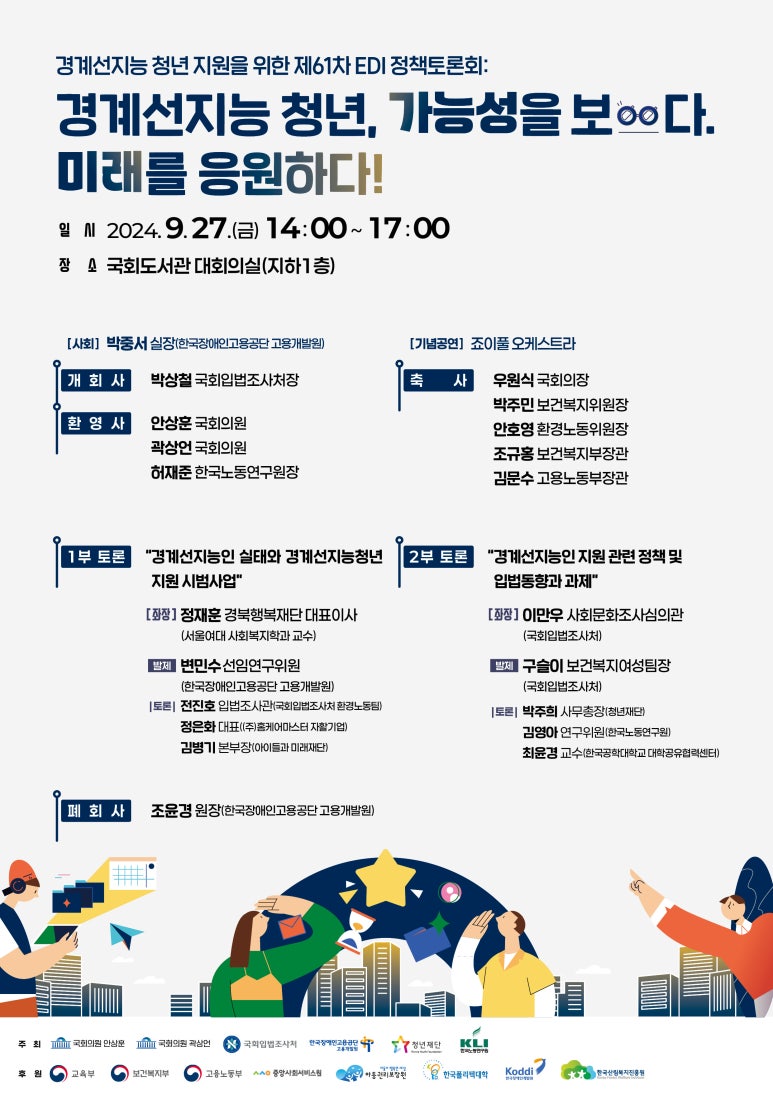경계선지능 청년 정책토론회에 관심 및 많은 참여를 부탁드리며 소식을 전합니다.