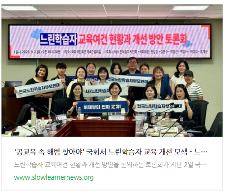'공교육 속 해법 찾아야' 국회서 느린학습자 교육 개선 모색 < 느린소식 < 기사본문 - 느린인뉴스