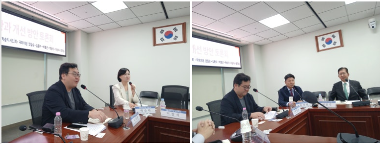토론회 날이 교육부 장관 인사청문회하는 날이라서 백승아의원님은 청문회 쉬는 시간에